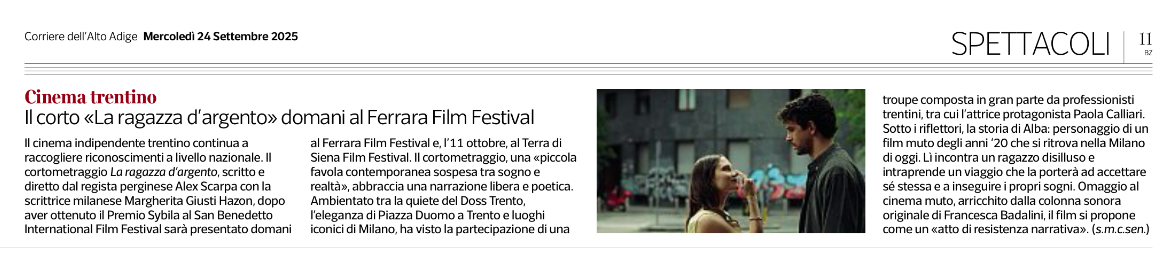 Il corto 'La ragazza d'argento' domani al Ferrara Film Festival —