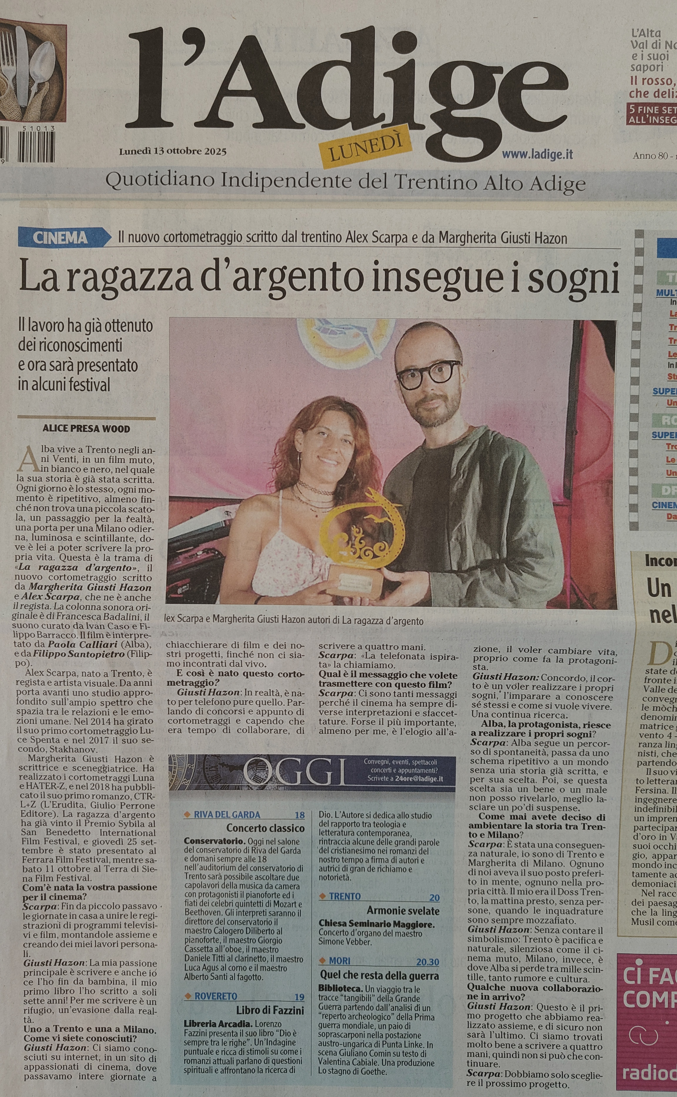 “La Ragazza d’Argento di Alex Scarpa e Margherita Giusti Hazo in Anteprima al Cinemino di Milano —